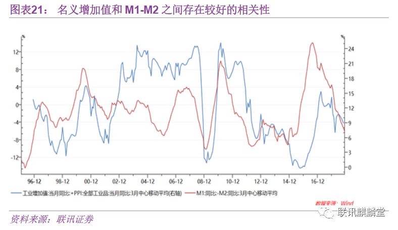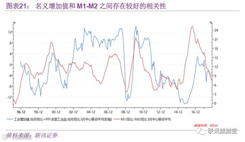 我们以工业增加值与PPI之和来近似拟合名义经济增长水平,会发现M1-M2同比差值确实对增长具有一定领先性,且拟合度较高。