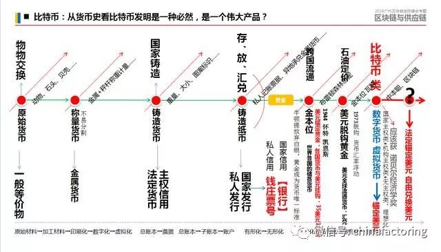 通过以上图可以得出,比特币及区块链技术的伟大发明,正好弥补金融业创新发展的技术体系短板,清晰地指引了金融服务及货币进化发展的方向。