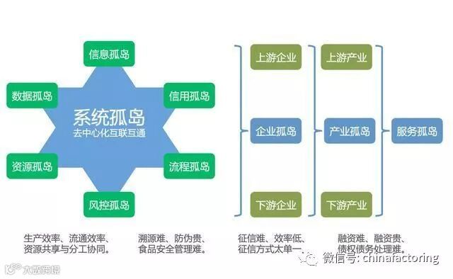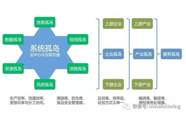 "单边化、私有化、分散化、封闭化"的传统信息化系统孤岛造成的企业孤岛、产业孤岛是产业经济和企业的现实深刻问题,表现在"信息孤岛、数据孤岛、流程孤岛、资源孤岛、信用孤岛、风控孤岛、服务孤岛",七个方面。