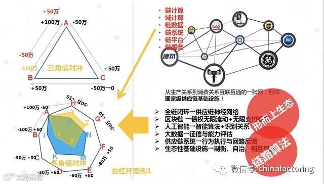 以下图,可以看出,在一个产业及企业的供应链大闭环体系中,应用区块链技术、人工智能算法(我称为链计算,总结了8种算法及模型),TOKEN机制,可以实现三角或多边债权债务,即应收应付款的对冲、质押、流转、拆分,降低各自的债务,增强流通性,这就是产业供应链协同网络运行的价值涌现与突变。也就印证"不需要金融"的话语。