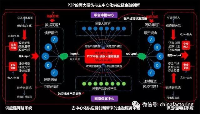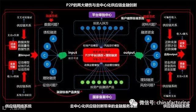 反之,P2P、银行机构也缺乏中小型企业的数据和信用,征信方式和征信效率没有良好基础。征信方式陈旧,成本高、效率低、效果差;更没有好的风控手段和保障措施,还是传统的资产质押、抵押、担保。上下游的信用担保形式也没有广泛应用,很多核心企业不愿意配合,且这种依托核心企业的金融服务方式,供应链金融,看似很好,但是暴露大量、巨量金额的债务违约事件,也说明了这种方式不是好的金融服务方式。这是一个阻碍供应链创新发展的巨大的鸿沟和障碍,也是供应链金融及金融普惠服务难以实现的障碍和难以突破的瓶颈。
