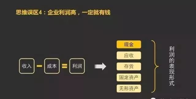 现金只是其中一种表现形式。例如卖出商品但还未收到账款,表现形式即为应收账款。卖出商品得到现金,但立刻转而购买原材料生产存货等等。