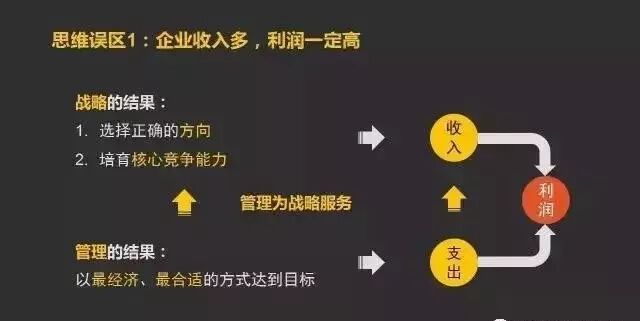 管理实际上是要追求最经济和最适合的方式来达到公司的目标。管理是为战略服务的,所以如果管理没有服务好战略,就会出现支出极大的增加,收入增加赶不上支出增加,最后导致公司的利润并不是非常理想的情况。