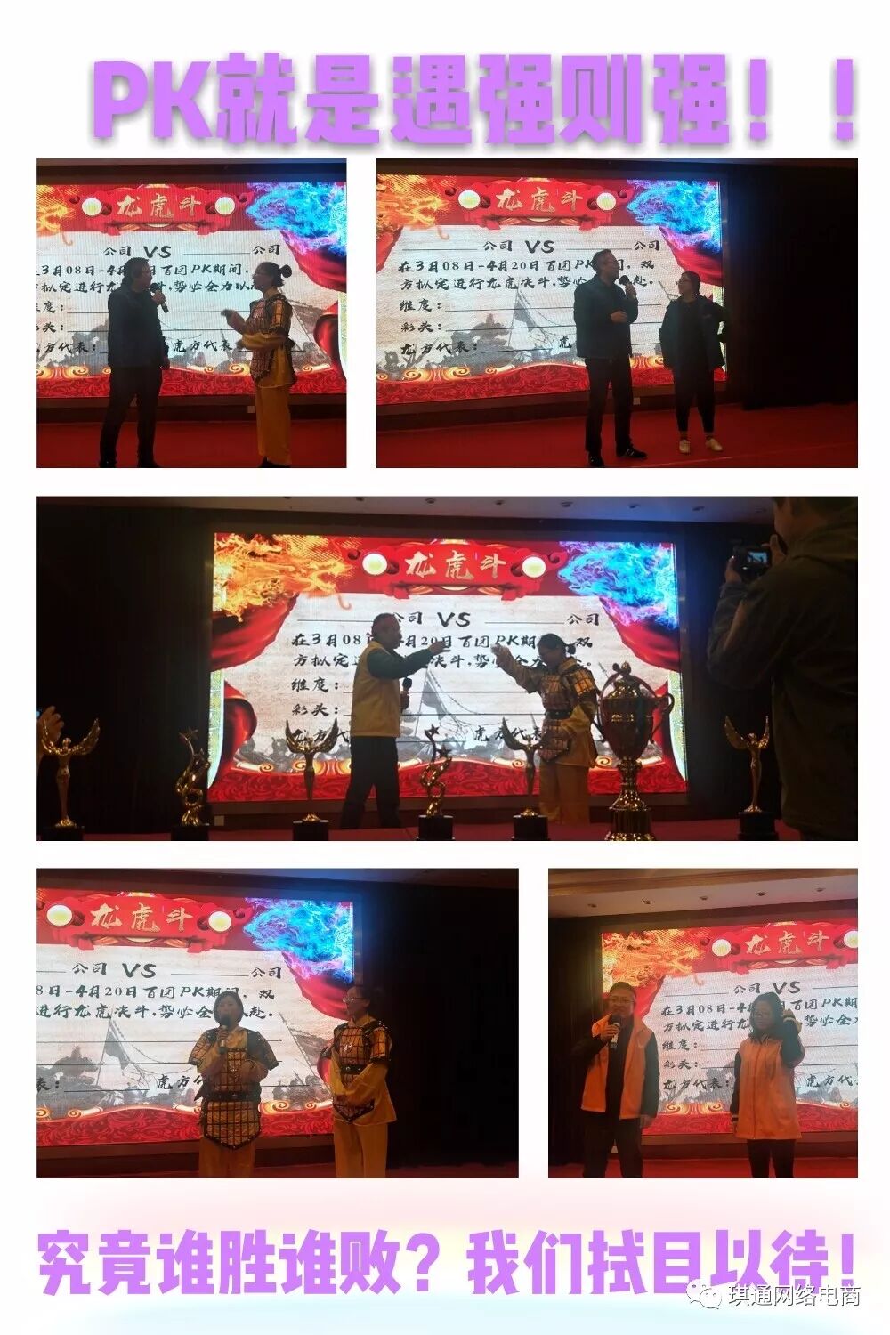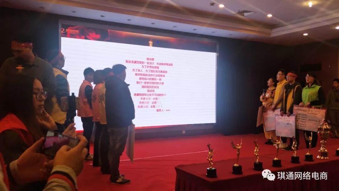军团中的各家公司陆续上台阐述自己目标,并说出自己公司达到目标的奖励和如若没达到的惩罚,老板们上台当着大家的面提出来!给予将士们动力!各老板均发言完毕后,,因为喝下这杯酒,订单一定有!勇士们加油!既然是战役,那么了免不了PK,到底谁家战火最燃最爆?各家英雄毫无畏惧,大步走向舞台中央制定着想要PK对象,逼TA现身!