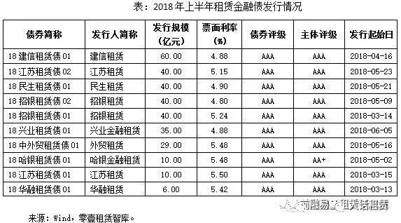 而反观金融债,Wind数据显示,今年以来已有哈银金租、建信金租、民生金租等11家金融租赁公司发行15只金融债,合计发行规模达到480亿元,规模已近2017年全年。此外,根据上述11家金融租赁公司金融债的央行获准公告,其在今年合计发行计划规模达到690亿元。其中,招银金租和建信金租发行计划规模最大,均为120亿元。