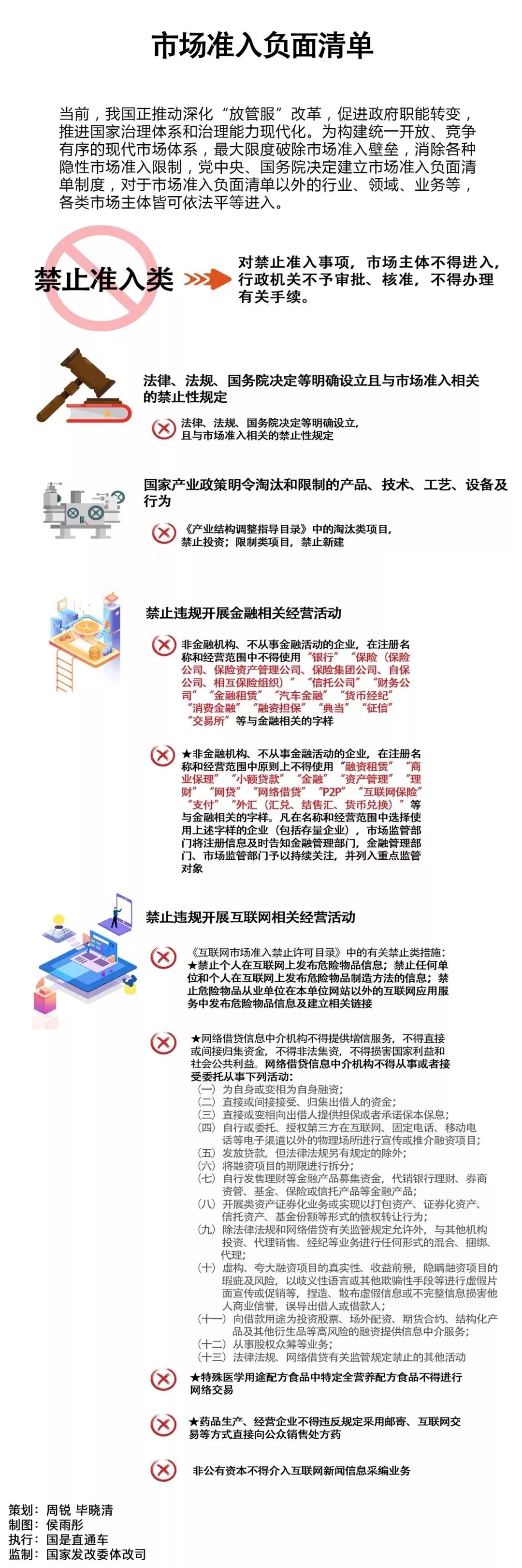 经中共中央、国务院批准,国家发展改革委、商务部25日发布《市场准入负面清单(2018年版)》。这标志我国全面实施市场准入负面清单制度,负面清单以外的行业、领域、业务等,各类市场主体皆可依法平等进入。