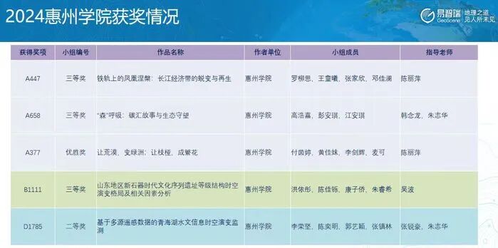 近日,2024易智瑞杯中国大学生GIS软件开发竞赛的获奖名单正式公布。经过激烈的角逐,我校地理与旅游学院地理信息科学专业学子在地图故事组、地理设计组和遥感应用组五组选手共获得二等奖1项,三等奖3项、优胜奖1项的优异成绩。