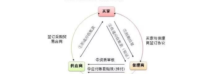 (3)反向保理(逆保理)。供应链保理商与资信能力较强的下游客户达成反向保理协议,为上游供应商提供一揽子融资、结算方案,主要针对下游客户与其上游供应商之间因贸易关系所产生的应收账款,即在供应商持有该客户的应收账款时,得到下游客户的确认后可将应收账款转让给供应链保理商以获得融资,与一般保理业务区别主要在于信用风险评估的对象转变。