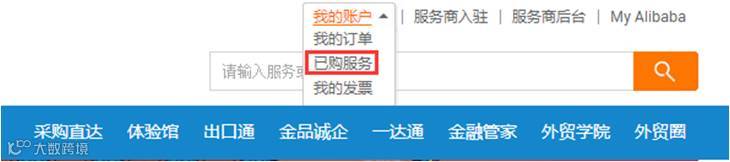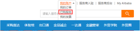 2)输入网址:https://fuwu.alibaba.com/ 点击我的账户,进入已购服务