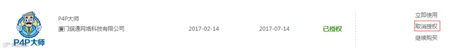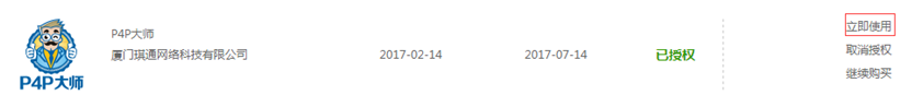 ④.找到P4P大师后,点击“立即使用”对软件进行授权(未购买的将显示“立即授权”)