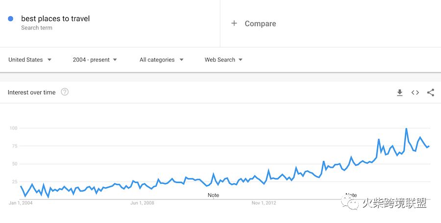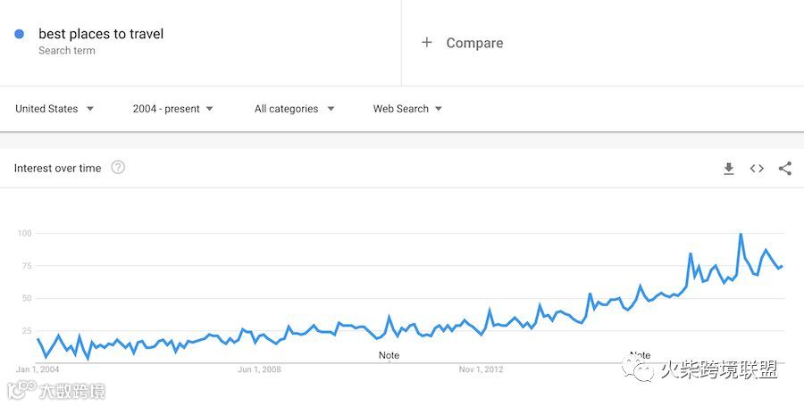 Here’s a fun way to market a scratch off map: First, use a Chrome extension like Keywords Everywhere to see keyword options every time you browse the internet. Then, look for long-tail travel related keywords, for example, ‘best places to travel’ instead of ‘travel’ or ‘vacation.’ You’ll see that that long-tail keyword has 22,000 monthly searches. But if you check Google Trends, you’ll also see that searches for that keyword have been rising.