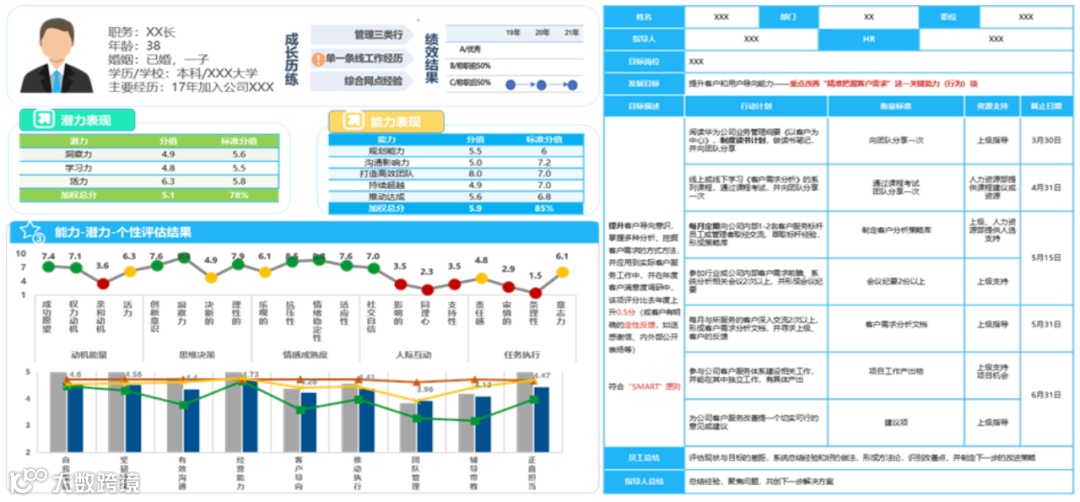 本阶段包含“培养实施”“发展评估”“动态应用”三个核心环节,以“人才培养项目”的规划开展为重心,结合公司发展目标和人才战略,靶向设计培养内容及形式,跟踪培养过程中关键人才不同阶段的变化情况,持续体系化进行能力发展评估并输出团队或个人的发展建议,为人才管理“育、选、用”提供科学量化的落地应用。