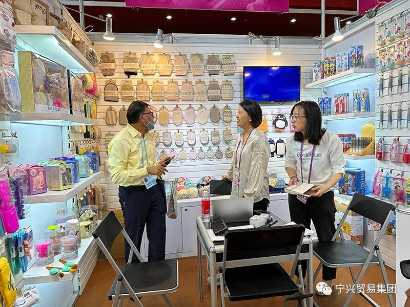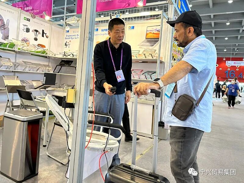 日用品专业部自主研发的养老智能产品、系列人体工学产品十分吸引眼球,众多客商纷纷驻足打卡,表达合作意向;服装专业部的衬衫、运动服装等优势、特色产品深受青睐,新老客户络绎不绝,接待人数达到历届之最,收获满满;森福公司众多遮阳新品参展,并首次尝试在展位开展直播营销,