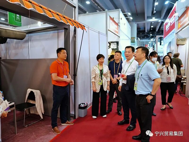 广交会期间,宁兴控股常务副总裁谈正国、宁兴贸易集团总经理张磊、副总经理吴雪泳、李军波、郑海波至各展位指导工作,为全体参展人员加油,鼓励大家坚定信心,