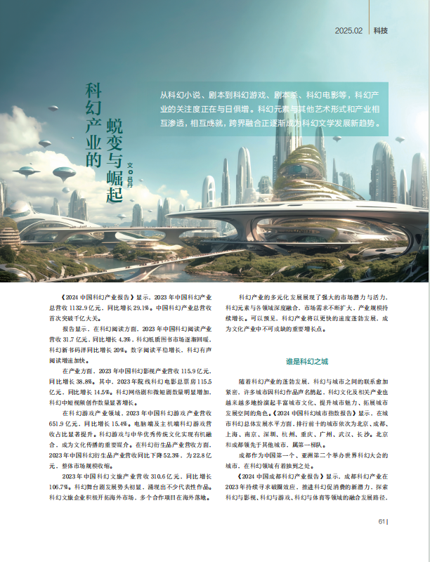 科幻产业的多元化发展展现了强大的市场潜力与活力,科幻元素与各领域深度融合,市场需求不断扩大,产业规模持续增长。可以预见,科幻产业将以更快的速度蓬勃发展,成为文化产业中不可或缺的重要增长点。