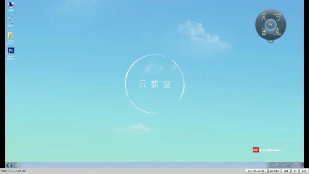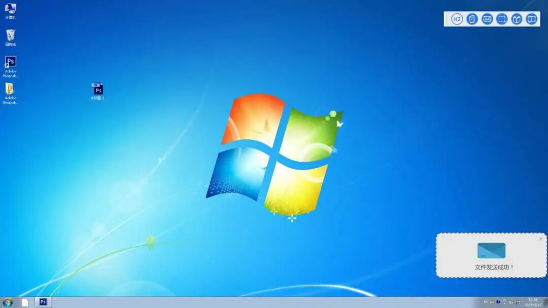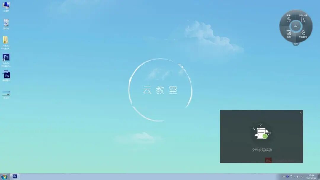 第一步:在作品设计期间,建议每5分钟点一次保存文件,完成作品以后,点击桌面右上角“发送文件”按钮(五楼电脑点“发送文件”按钮前需先用鼠标右击“xx”按钮,xx代表机器号),启动文件传输界面。