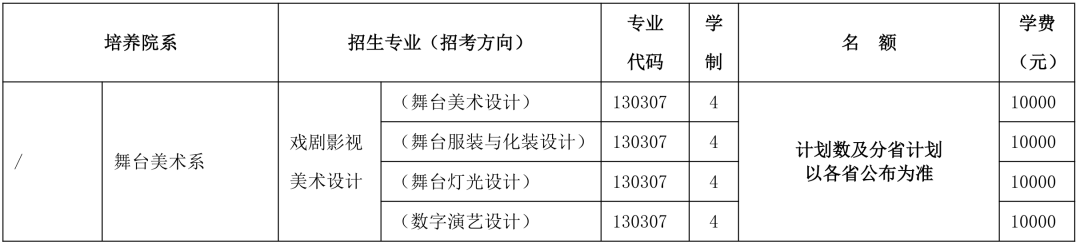 戏剧影视美术设计专业使用省级统考成绩录取,编制分省计划;艺术管理专业使用高考成绩录取,编制分省计划。对于设置分省计划的专业,如遇投放计划省(区、市)相应批次分为历史类/物理类(文史类/理工类),则只编制历史类/文史类计划。