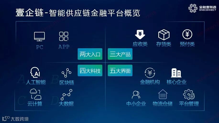近年来,C端的消费金融服务方在逐渐依托于各种场景找到数据和关联策略,而对于B端的供应链而言,最好的方式也就是将供应链进行数据化、场景化、移动化和技术化。近日,平安旗下科技公司金融壹账通发布的壹企链智能供应链金融平台,则是创造了一种全新的以技术为支撑的,破解融资难、链通跨境贸易网络的新型供应链融资方式。