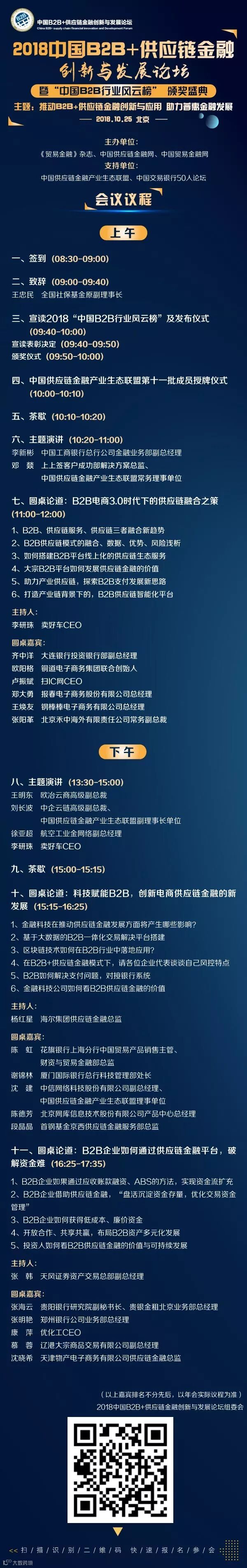 2018中国B2B+供应链金融创新与发展论坛,意在探讨、深度解读2018年,我们如何建设跨境B2B金融的发展?如何打造互联网产业链金融生态圈?如何创新与发展B2B+供应链金融平台?跨境电商供应链服务创新模式?如何驱动电商供应链金融?智能物流如何高效服务跨境电商?这些问题都将在“2018中国B2B+供应链金融创新与发展论坛”上找到答案。