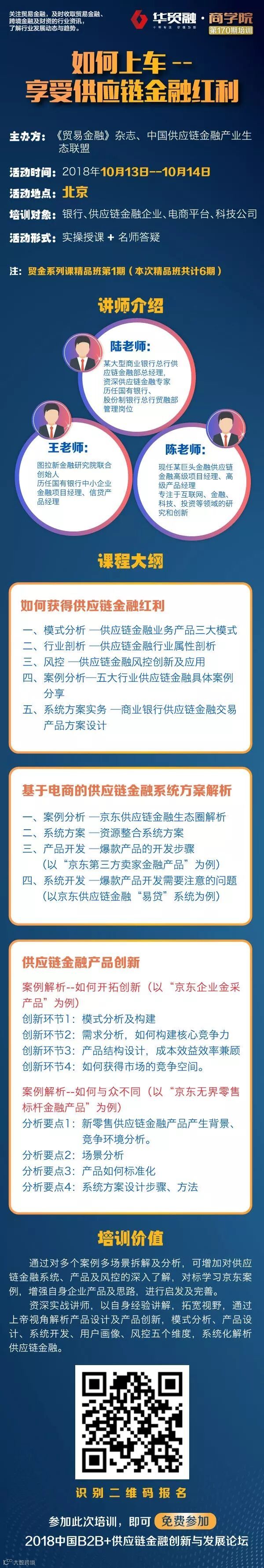 资深实战讲师,以自身经验讲解,拓宽视野,通过上帝视角解析产品设计及产品创新,模式分析、产品设计、系统开发、用户画像、风控五个维度,系统化解析供应链金融。