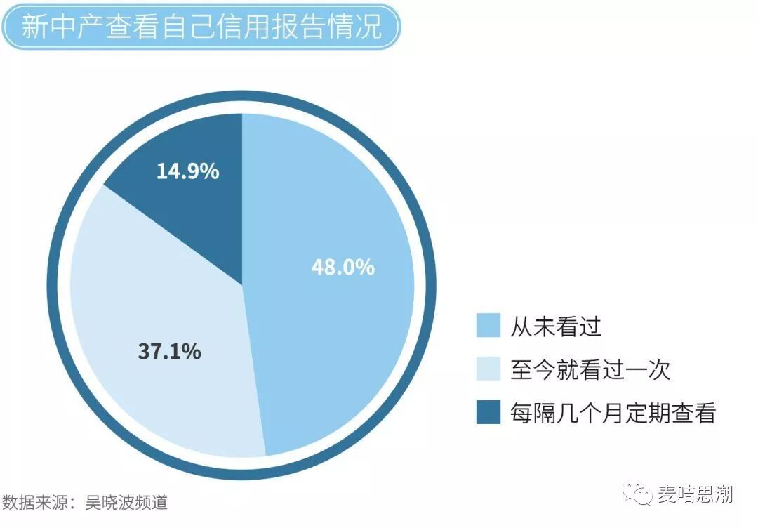 因为新中产不借钱,所以他们对自己的信用也就不是很关心,不会去了解自己的信用报告。