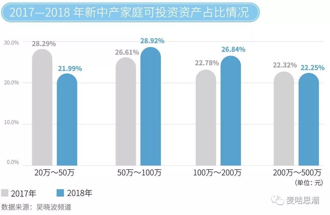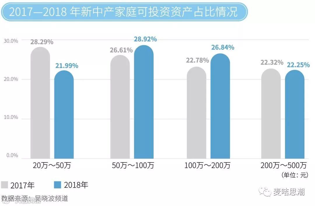 新中产在财务上有一定的可投资资产。根据调查结果,我们将新中产的可投资资产分为四个层次:第一个层次是20~50万,第二个层次是50~100万,第三个层次是100~200万,第四个层次是200~500万。
