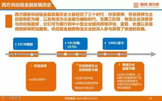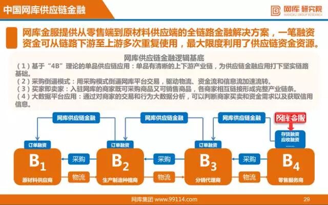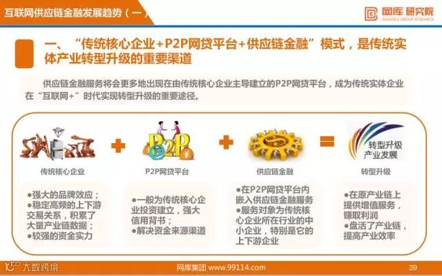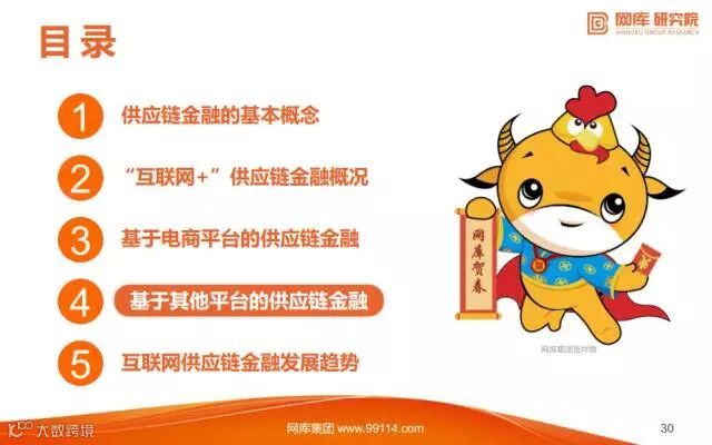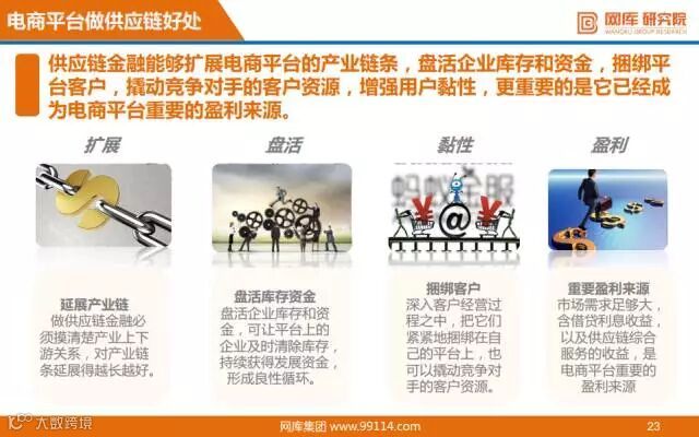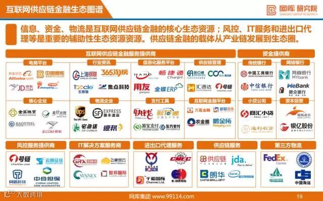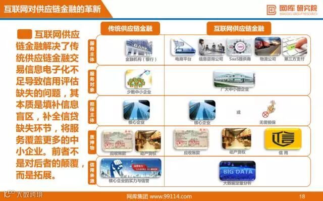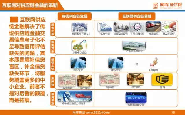 日前,由网库研究院出品的《“互联网+”供应链金融分析报告》,就对上述问题进行了深入分析与研究。内容包含供应链金融的基本概念、“互联网+”供应链金融概况、基于电商平台的供应链金融、基于其他平台的供应链金融、互联网供应链金融发展趋势五大板块。