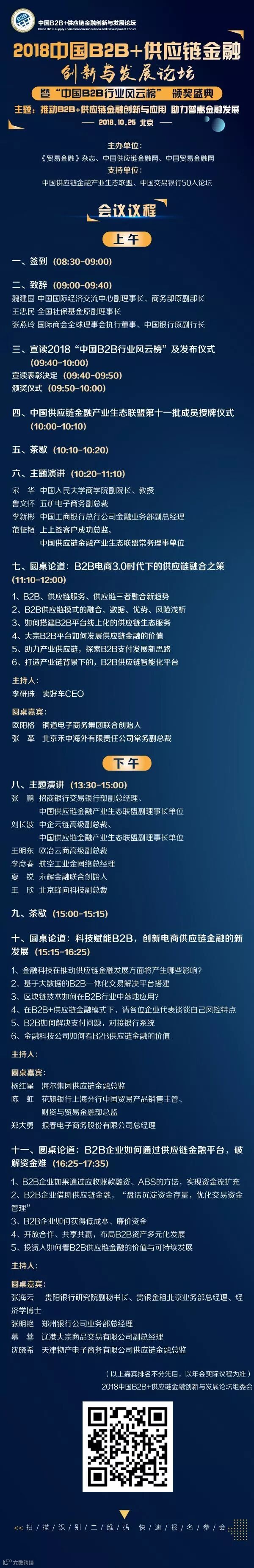 2018中国B2B+供应链金融创新与发展论坛,意在探讨、深度解读2018年,我们如何建设跨境B2B金融的发展?如何打造互联网产业链金融生态圈?如何创新与发展B2B+供应链金融平台?跨境电商供应链服务创新模式?如何驱动电商供应链金融?智能物流如何高效服务跨境电商?这些问题都将在“2018中国B2B+供应链金融创新与发展论坛”上找到答案。