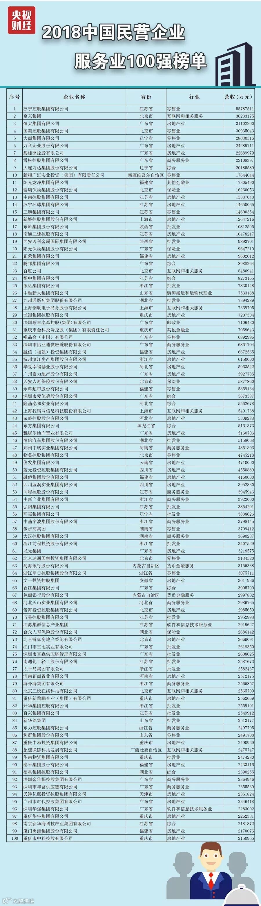 由全国工商联和辽宁省人民政府共同主办的2018中国民营企业500强峰会29日在沈阳召开,会上发布了2018中国民营企业500强榜单和《2018中国民营企业500强调研分析报告》。华为投资控股有限公司、苏宁控股集团有限公司、正威国际集团有限公司位列2018中国民营企业500强前三名。