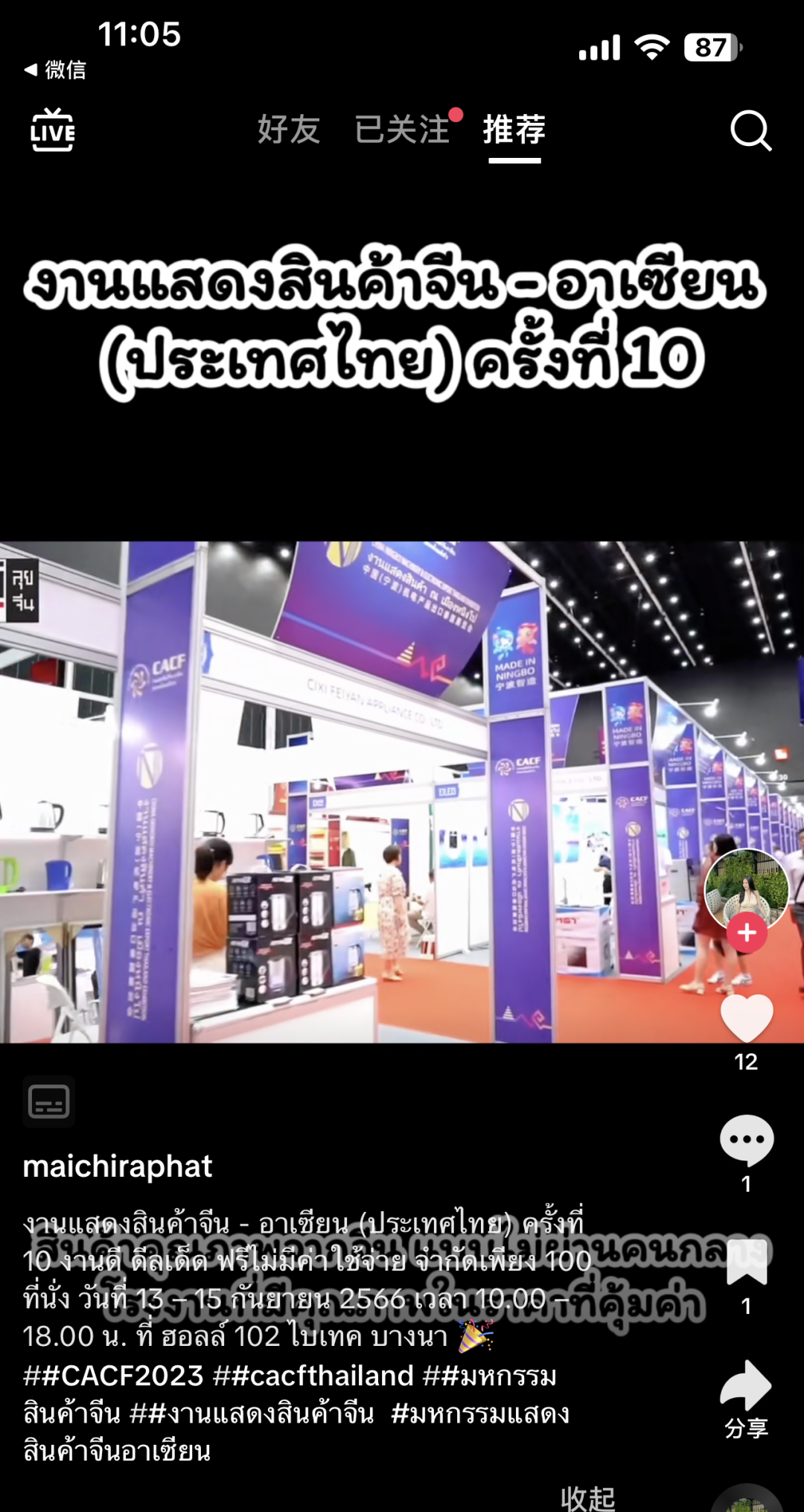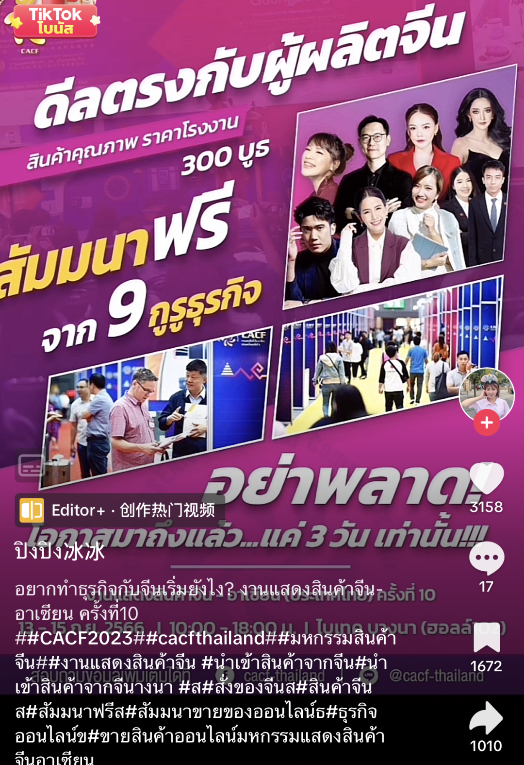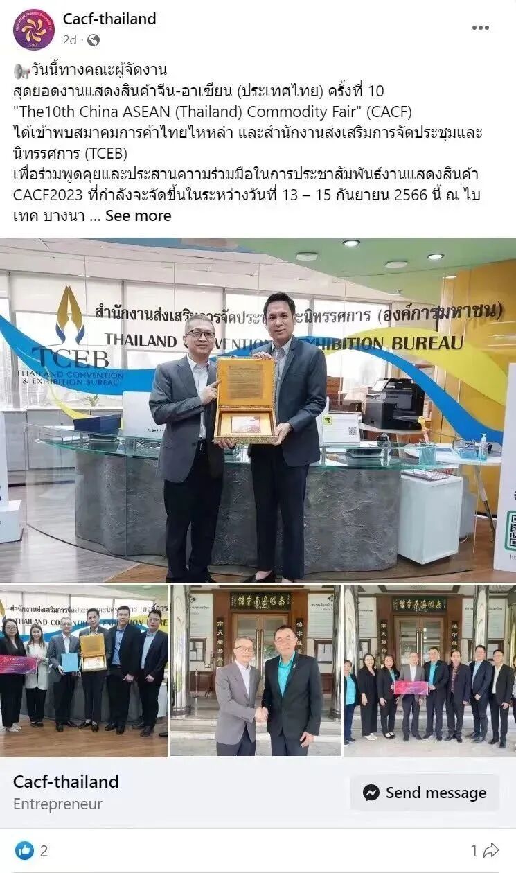 全力支持9月泰国展的举办,将在泰国会议展览局平台 发布展会信息,助力泰国展宣传 Fully support the holding of the Thailand Exhibition in September, and will release exhibition information on the platform of the Thailand Convention and Exhibition Bureau to help promote the Thailand exhibition.