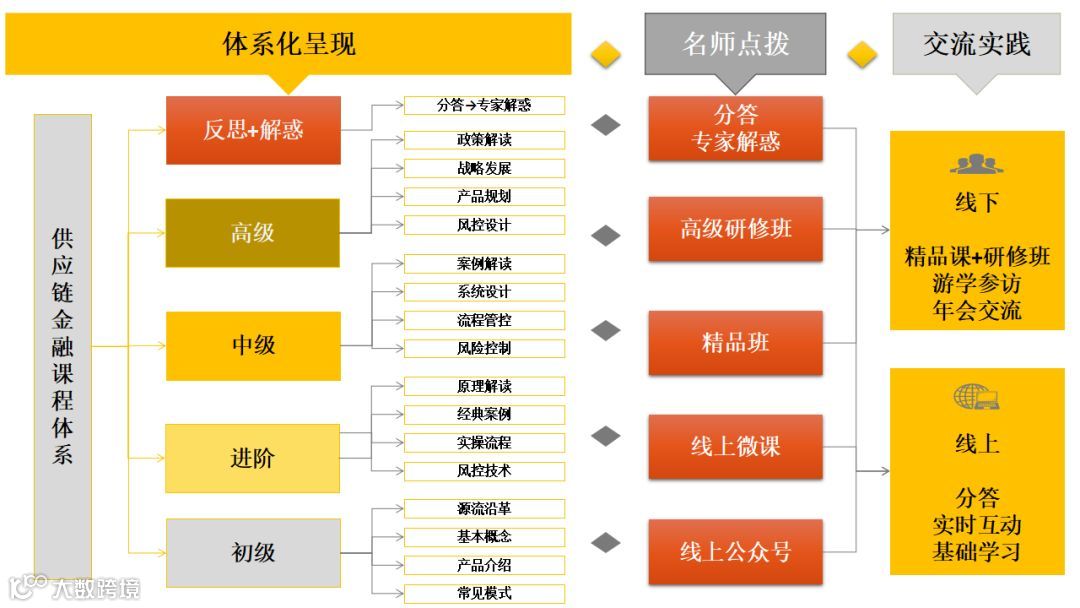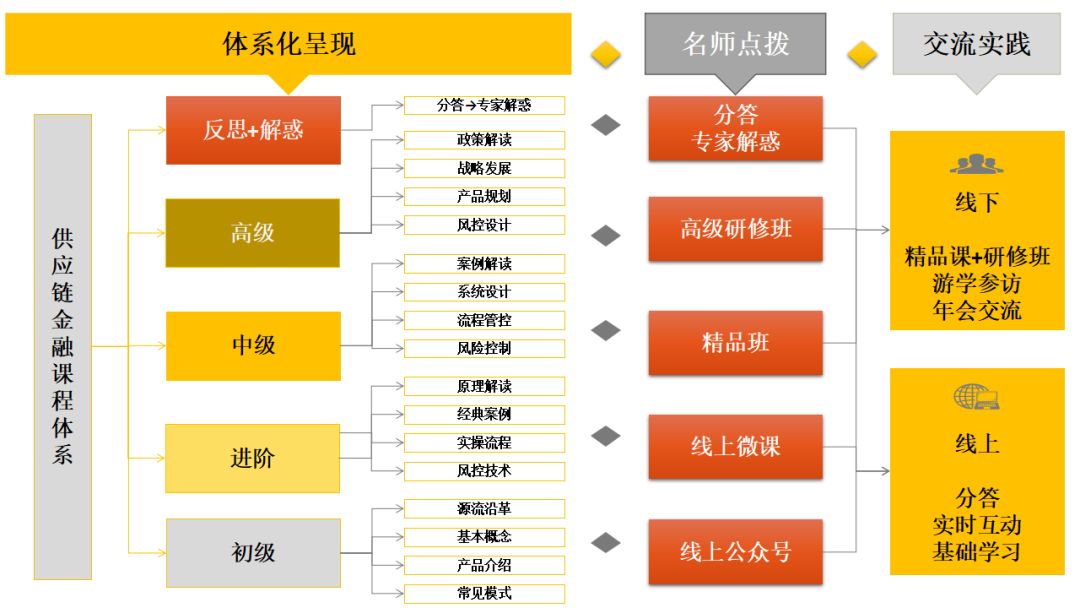 华贸融研究院,近日将推出“供应链金融课程体系”整个课程分为5个部分,分别是初级、进阶、中级、高级和终极(反思和解惑),通过这一系列的课程设计,目的就是让有志成为专家的从业者、小白,突破天花板魔咒,成为行业专家。