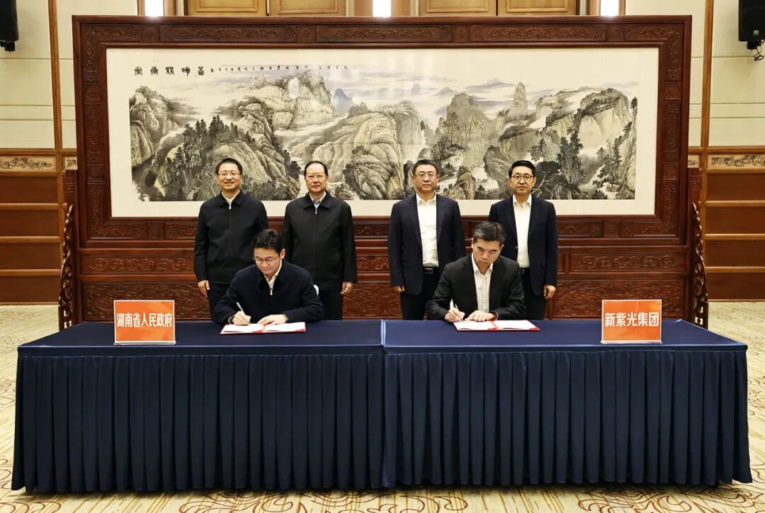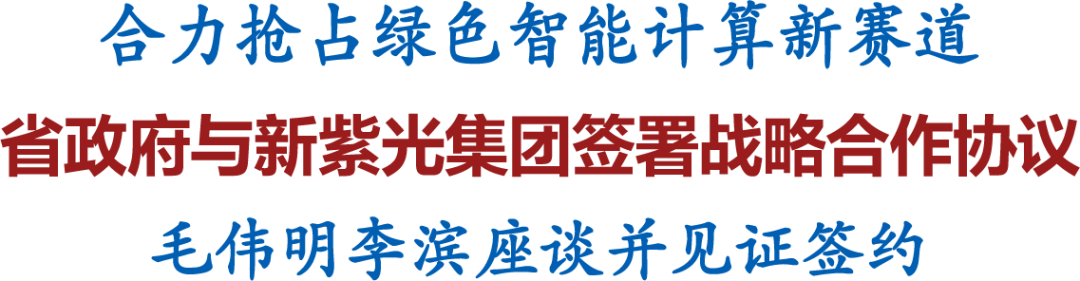 省政府与新紫光集团有限公司在长沙签署战略合作协议,深入贯彻党的二十届三中全会精神,推动湖南绿色智能计算产业提质增效。省委副书记、省长毛伟明与新紫光集团董事长李滨座谈并见证签约。