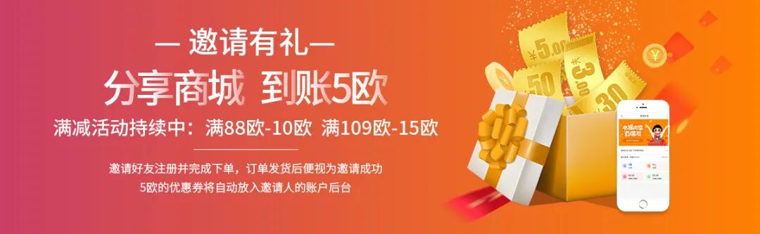 则视为邀请成功,奖励€5优惠券到邀请人账户