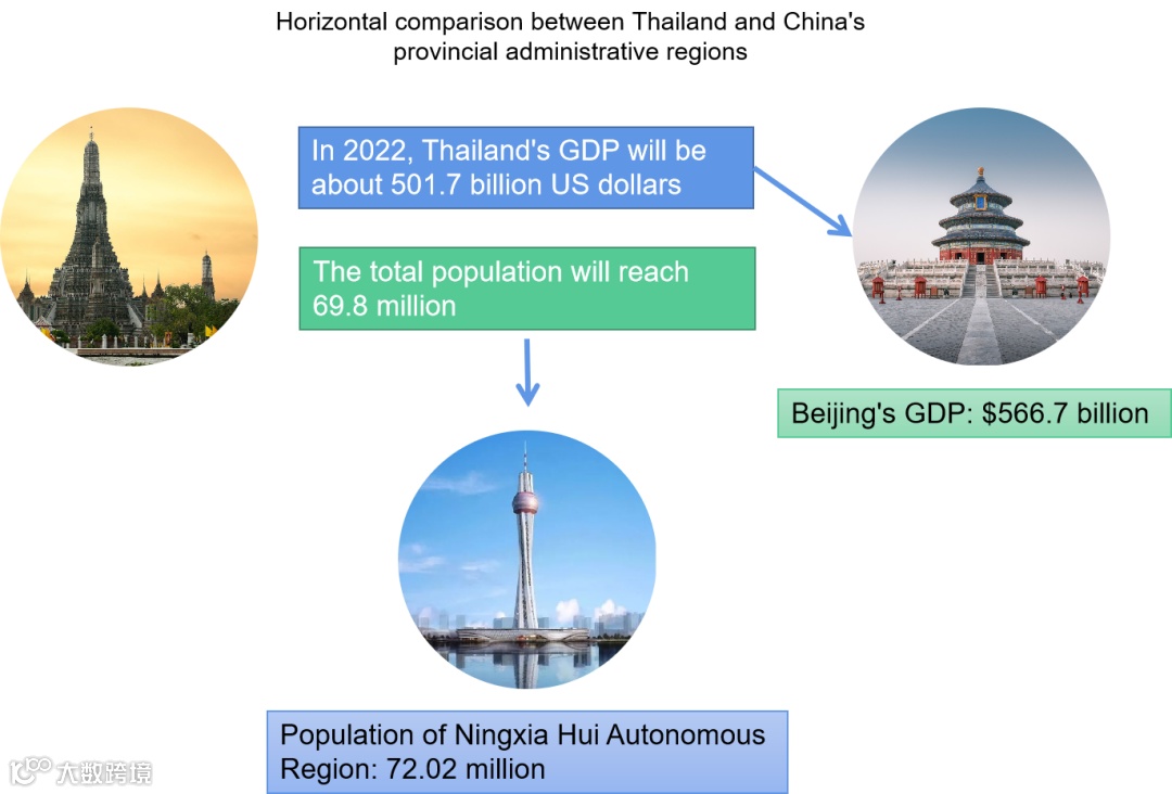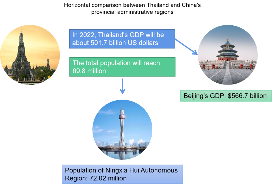 Thailand's GDP is expected to be about 501.7 billion US dollars in 2022, and the total population will reach 69.8 million people, which is equivalent to the estimated GDP of Beijing Municipality, and the population is equivalent to the estimated value of China's Ningxia Hui Autonomous Region (72.02 million people).