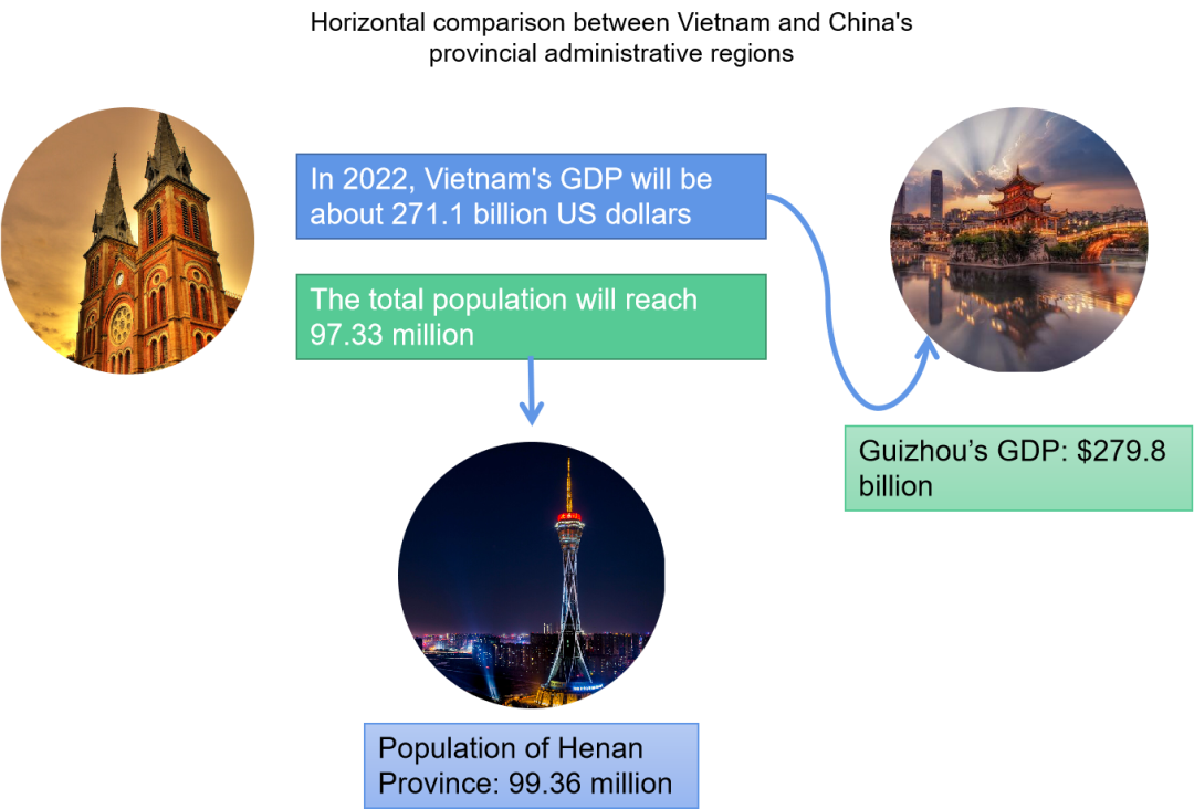 As China's largest trading partner in ASEAN, Vietnam's GDP is expected to reach US$271.1 billion in 2022, similar to the inferred Guizhou province of China; the total population is expected to reach 97.33 million, equivalent to the total estimated population of Henan Province.