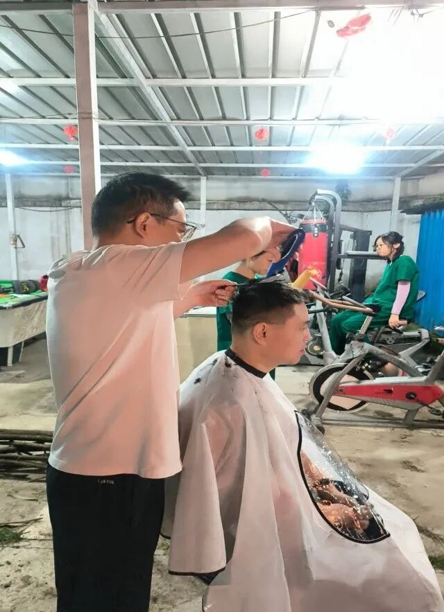 没有治疗任务时,赵村辉和队员们会一起打扫打扫驻地、整理整理药械仓库,业余时间他们还摘摘菜,也会一起做做体育运动,赵村辉抽空也给队员们理理发。夜间他们还要进行驻地安全巡查。