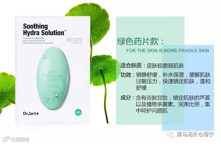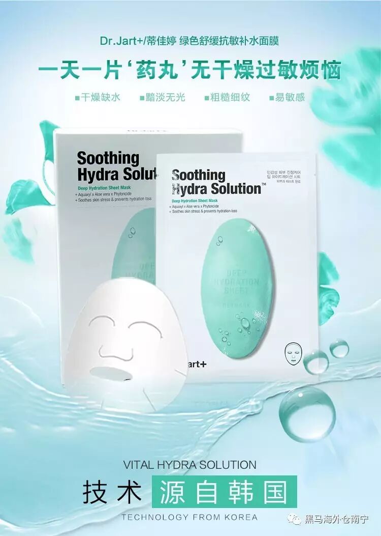 如水动力舒缓补水面膜(绿色药丸面膜),选用的是从棉花提取的100%纤维素材质,该材质最大的特点是水分传导快、同时可包含自身重量13倍的水分。因此,6-8分钟即可完成充分的补水效果,适合作为晨间面膜,让肌肤一整天都维持健康水润的状态。也因这一特点,Dr.Jart+蒂佳婷药丸面膜登上纽约时装周后台,作为模特妆前急救面膜,可快速恢复肌肤活力,让后续妆容更服帖。