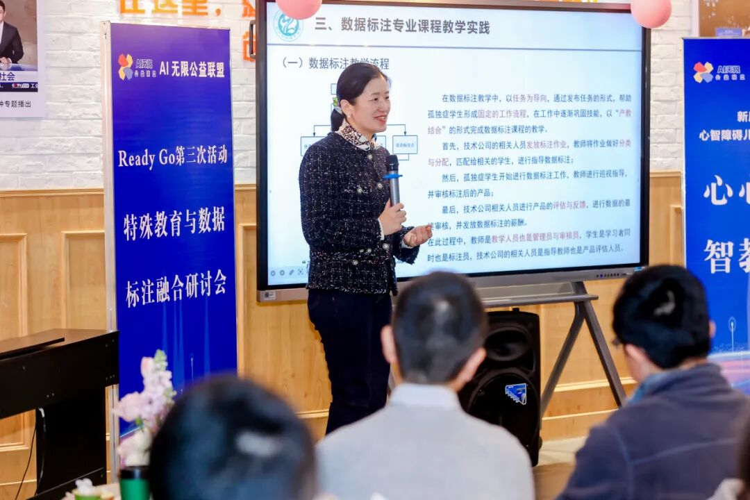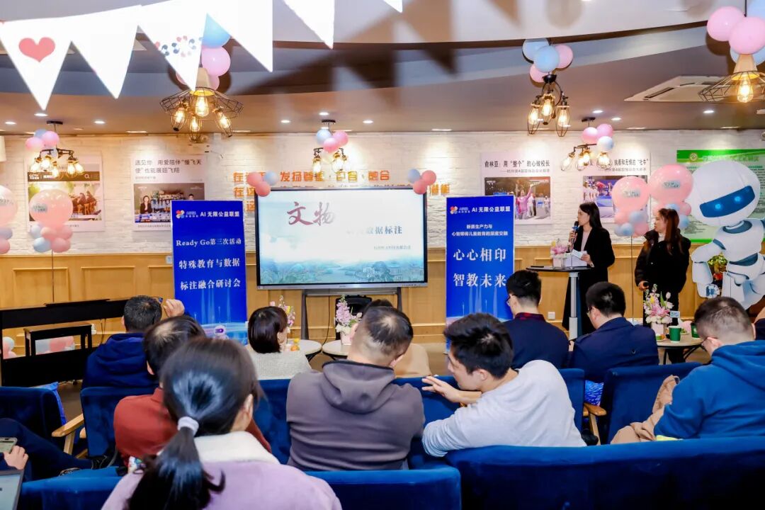 杭州读懂科技有限公司总经理郭斌和杭州枢文科技有限公司副总经理张英也分别就特殊教育与数据标注的话题进行了分享。他们通过实践案例,展示了孤独症学生在数据标注方面的潜力和适应性,并表达了对未来发展的期待和思考。