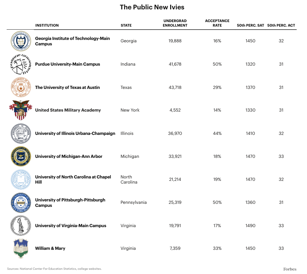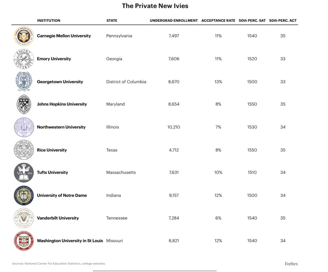 这些学校被《福布斯》称为“新常春藤”(New Ivies),它们不仅在学术和录取标准上不逊色于传统名校,也凭借出色的毕业生表现赢得了企业界的高度评价。