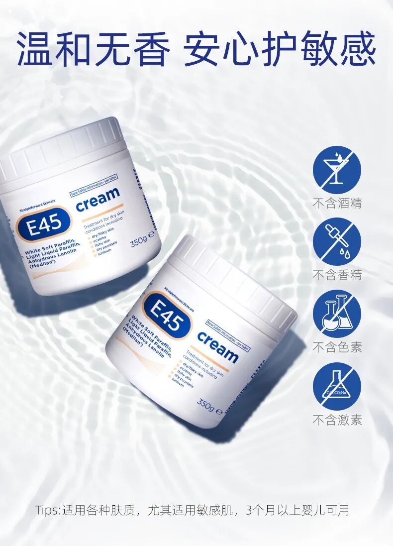 别看它的名字很简单,但来历一点儿都不简单,E45是拥有60年历史的英国著名药妆品牌,是英国医美级皮肤修护专家及皮肤科医生推荐的护肤品,英国随处都能买到,几乎家家都有它家的产品。