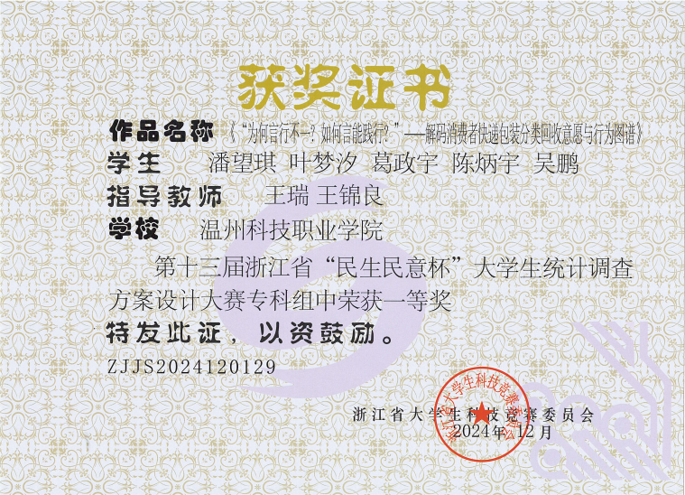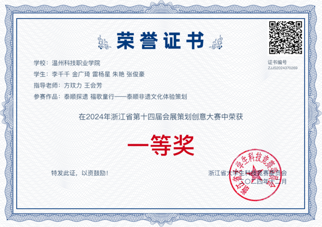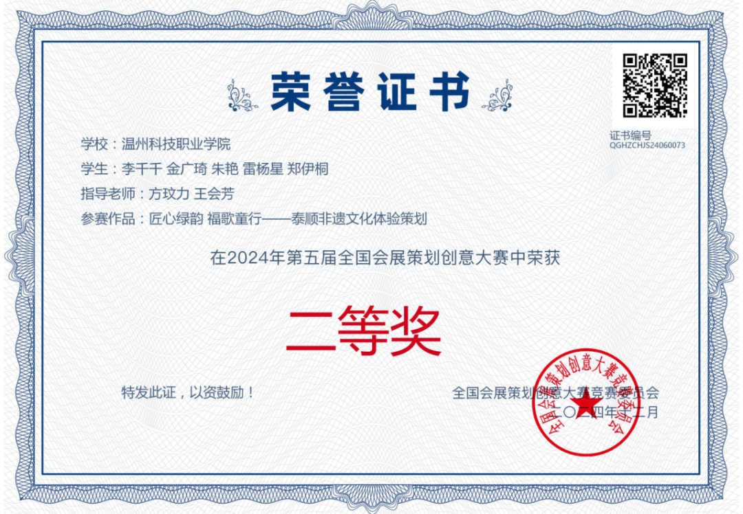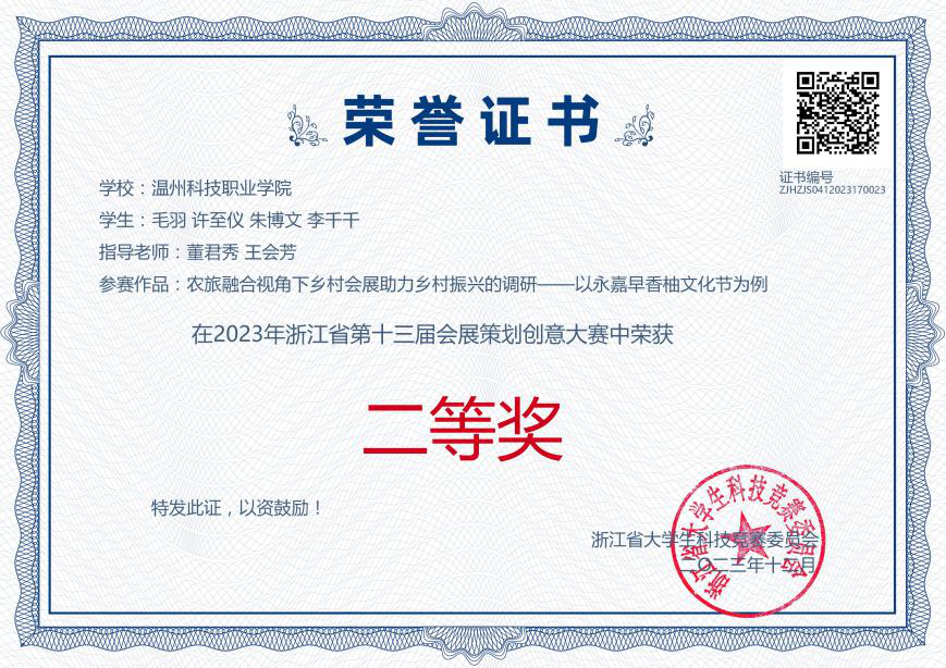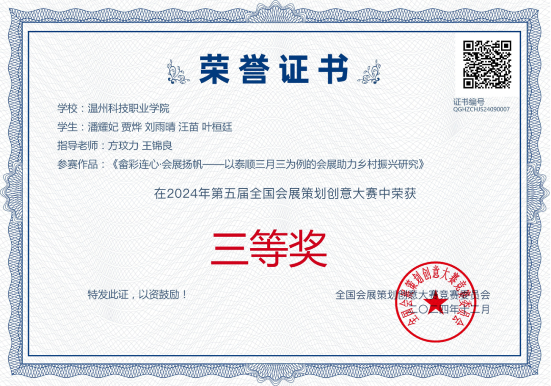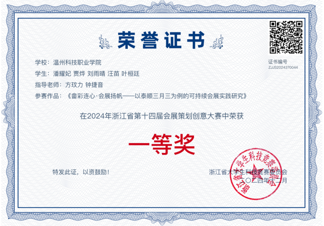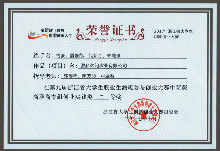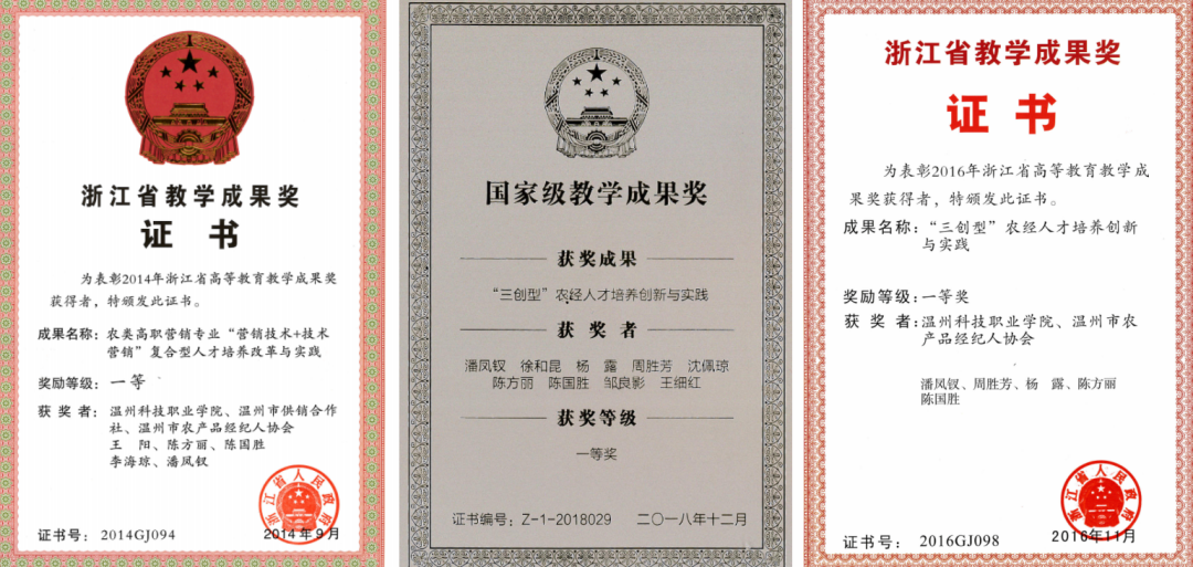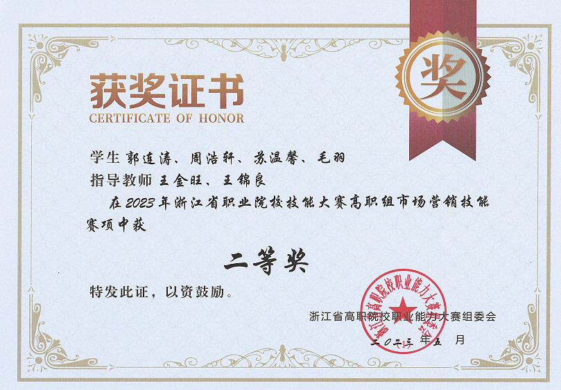 专业师生在各类技能大赛中屡创佳绩,共获得国家级、省级奖项60多项,其中包括全国互联网+大学生创新创业大赛全国铜奖、浙江省金奖和银奖,浙江省高校调查统计大赛二等奖,浙江省市场营销技能竞赛二等奖,以及浙江省职业生涯规划与创业大赛一、二等奖等重点一类竞赛奖项。