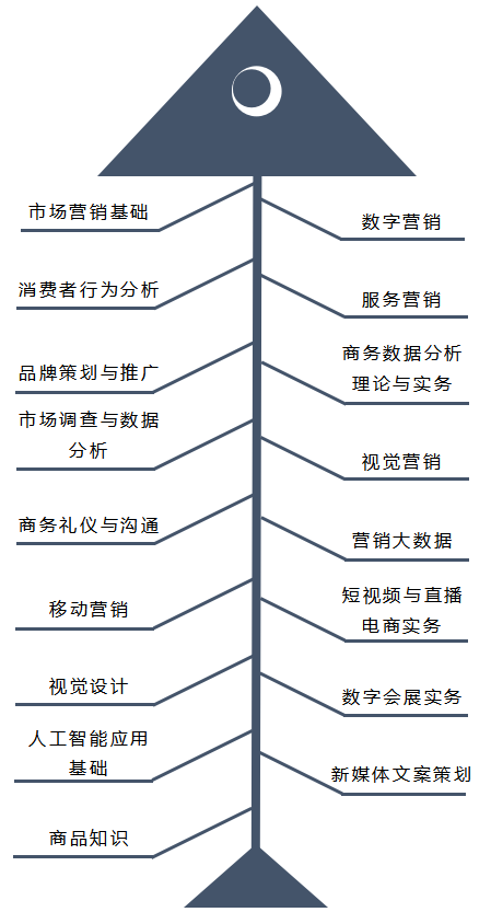 面向批零、商务服务、制造及互联网等行业及事业单位,可胜任市场策划、市场推广、互联网运营等岗位,具备专业技能与创业能力。