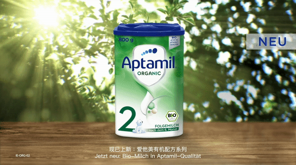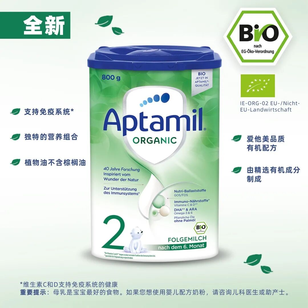 产品配方不含棕榈油,全新Aptamil ORGANIC较大婴儿配方奶粉,包含独特的营养组合。