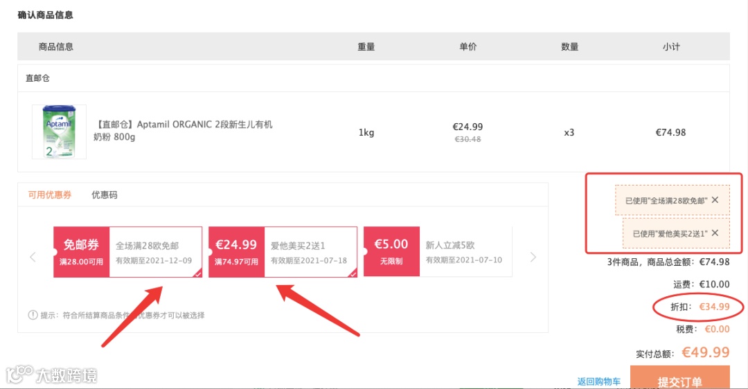 即日起购买爱他美有机奶粉买2送1,单罐低至127.8元!