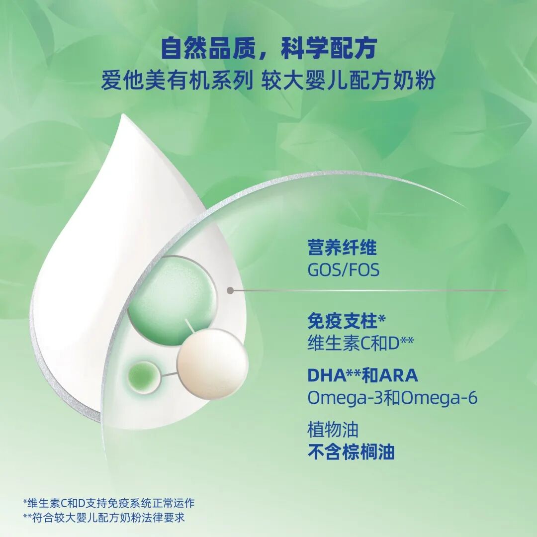 爱他美有机系列符合适用的有机标准,已获得该认证。