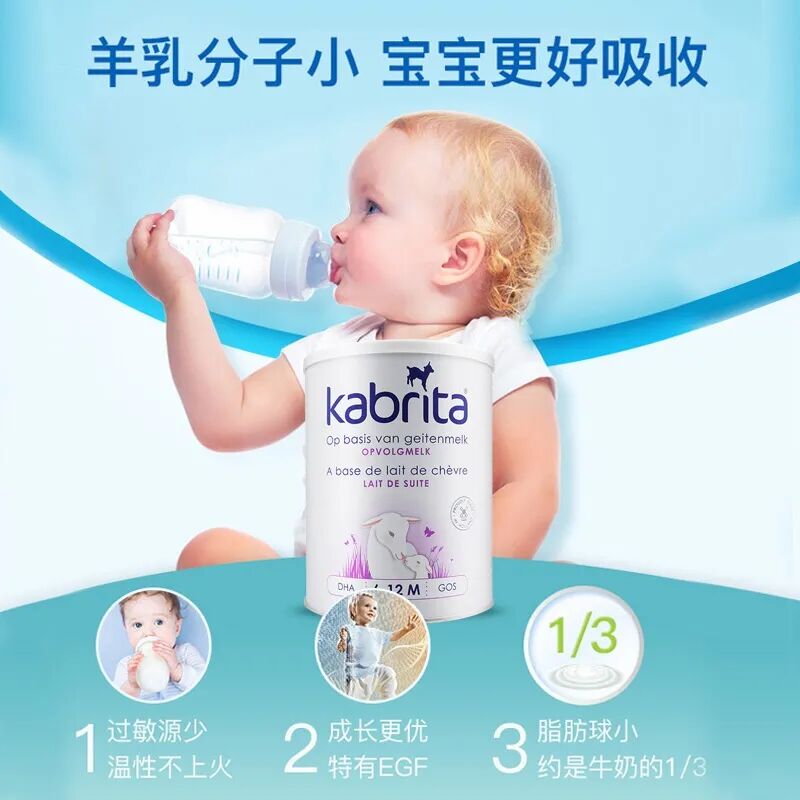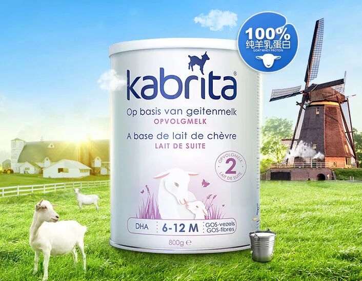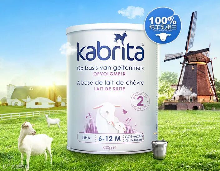 山羊奶的成分类似母乳奶,它比牛奶含更少的乳糖成分,因此,羊奶的机体耐受度更高,不易过敏,Kabrita羊奶粉对敏感体质儿童而言,是牛奶的很好替代品。