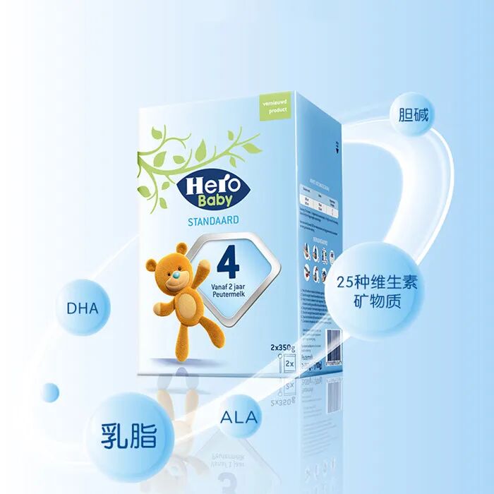 Herobaby标准婴幼儿配方奶粉是“不含棕榈油” 配方,完全婴幼儿奶粉安全标准,奶粉好吸收、清淡不上火。另外,还添加了益生元GOS和26种关键维生素和矿物质,有助于肠道消化、骨骼和牙齿的发育,帮助补充孩子成长所需的多项营养元素。