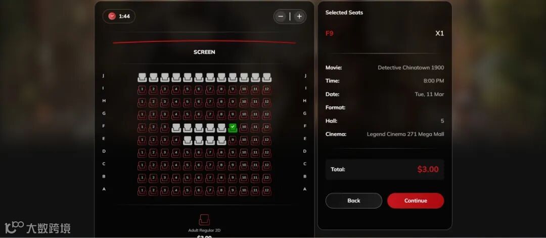 2、如何购买中文原声的电影票(以Legend Cinema 271 Mega Mall为例)