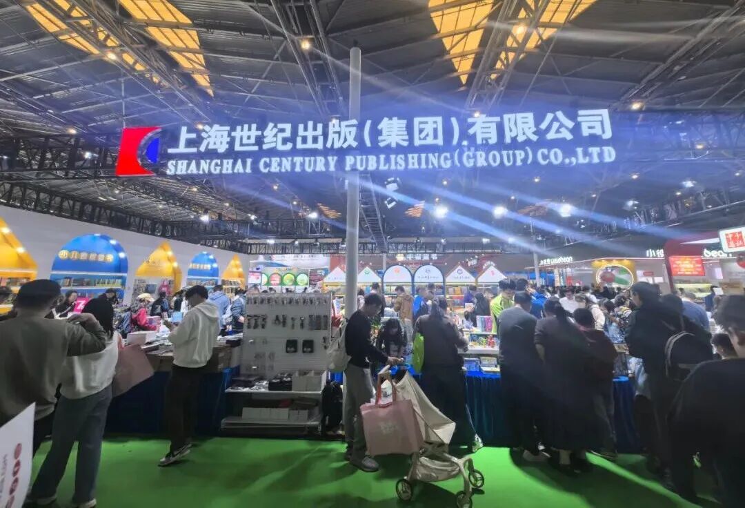 世纪出版集团销售展位由旗下上海外文图书有限公司经营:今年消费转换率比较好,客单金额也比去年高些,文创和国内图书销售与去年基本持平(不包括少儿社),进口童书销售增长约10万元,总体销售较去年增长9万多元。