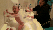 可在一间小房间给宝宝泡澡,含有精油成分的水蒸气就似雾化吸入,非常有益于宝宝呼吸道的健康。